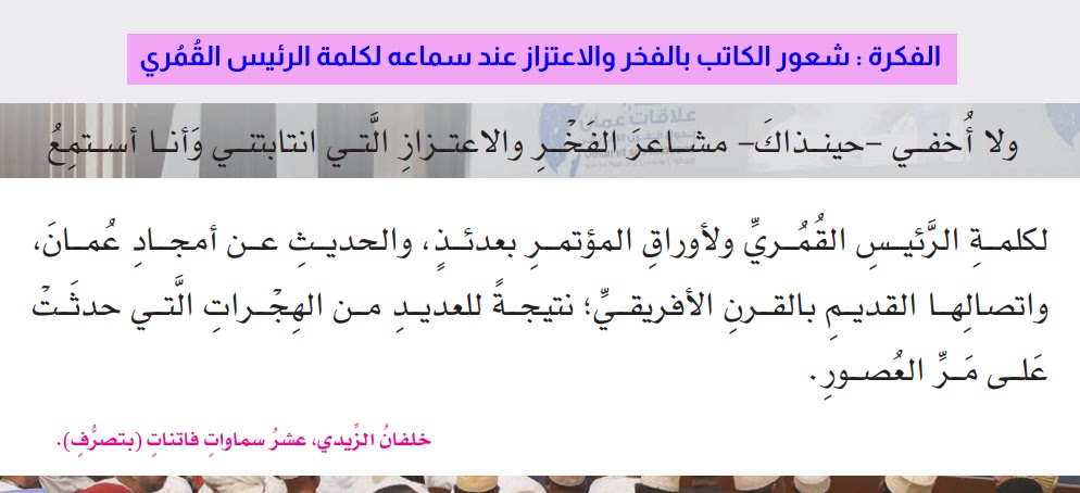 الفكرة العامة لدرس أيامنا في القُمُر : زيارة الكاتب لجزر القُمُر ، ومعلومات عن العلاقات بين العمانيين والشعب القُمُري.